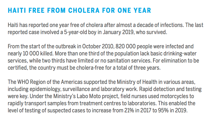 South Sudan and Yemen. Globally, cholera cases declined by 60%