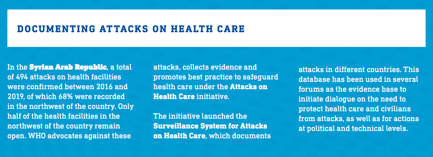 humanitarian crises: WHO picked up thousands of public health