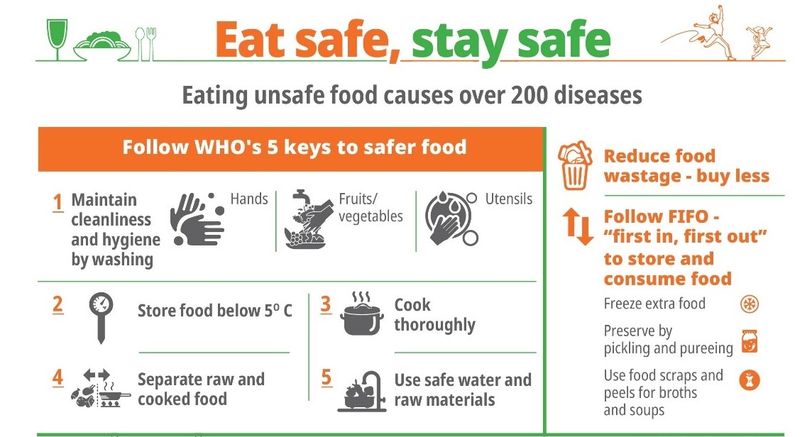 In 2022, the theme, “Safer food, better health”, highlights the role that safe, nutritional food plays in ensuring human health and well-being and calls for a set of specific actions to make food safer. It also emphasizes the importance of reducing food wastage to improve food safety and health for ‘Our Planet, Our Health’.